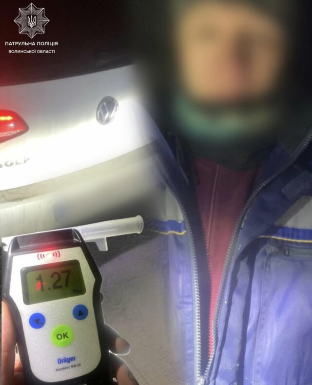 Результати тесту на алкотестері Драгер показали 1.27 проміле алкоголю.