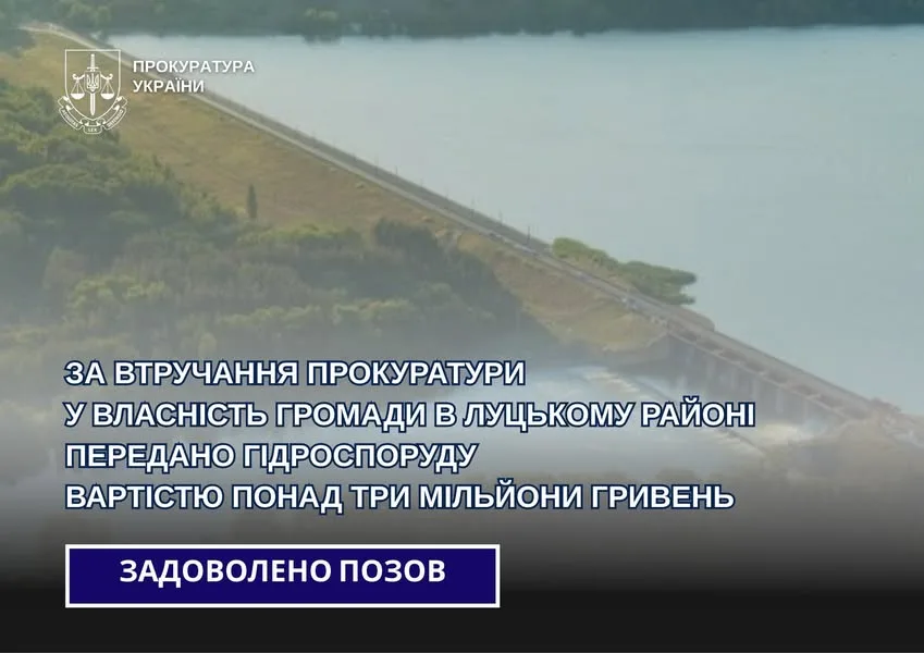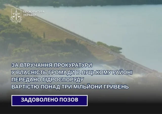 Гідротехнічна споруда вартістю понад три мільйони гривень відтепер у власності громади Луцького району завдяки зусиллям прокуратури. Про це повідомляє Facebook.