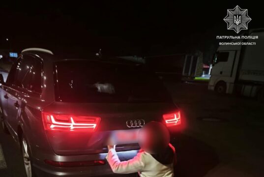 (Українська) В Луцьку під час комендантської години патрульні затримали автомобіль Audi з фальшивими номерами