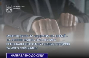 До суду скеровано справу щодо начальника Регіонального офісу водних ресурсів у Волинській області та восьми спільників, які розкрали понад 1,4 млн грн.